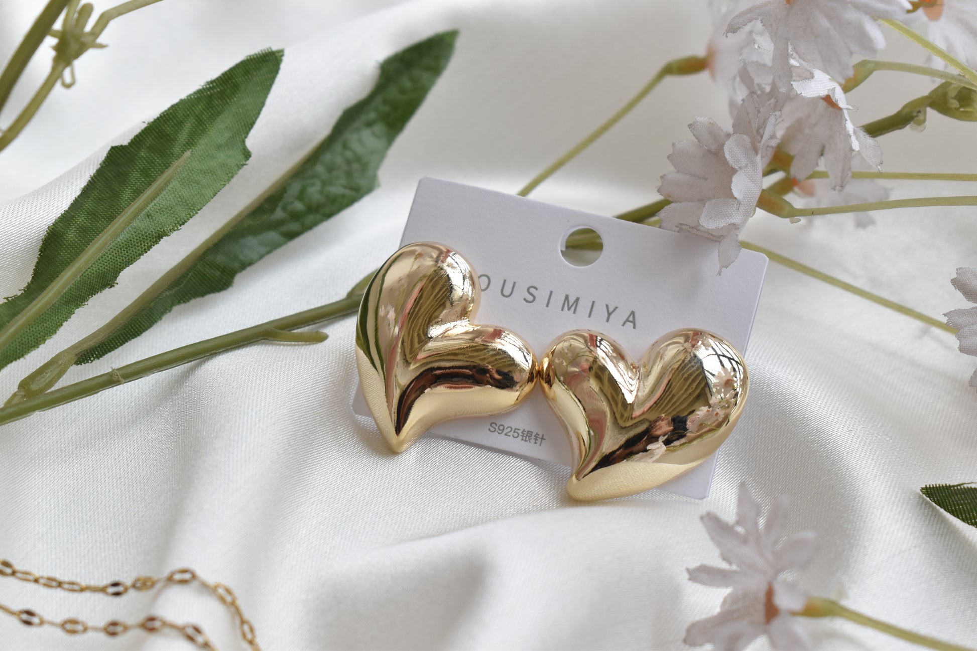 Heart shape golden pair of earring. Golden colour. Heavy metallic earring. Light weight