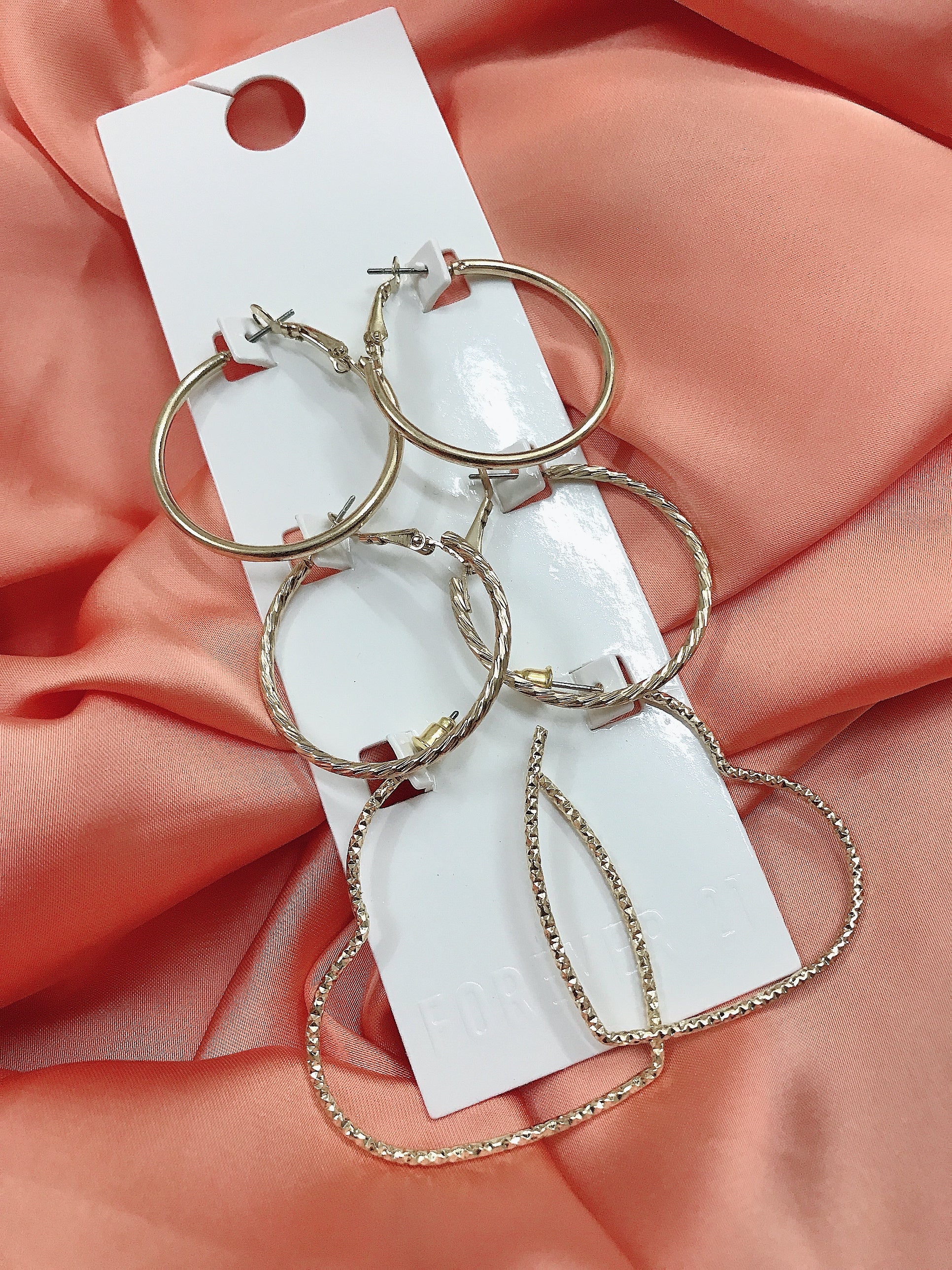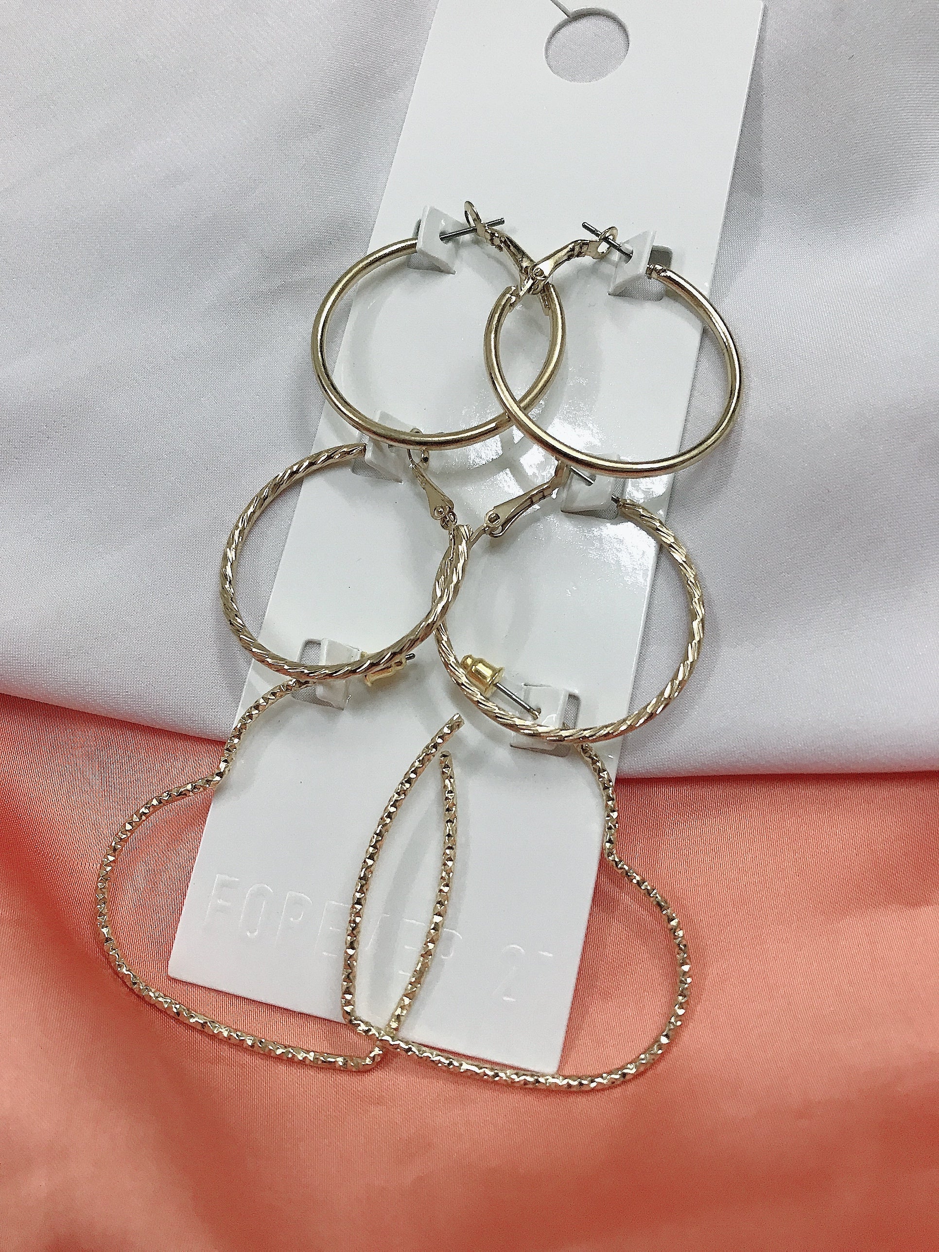 3 pair golden Love Circle hoop earrings