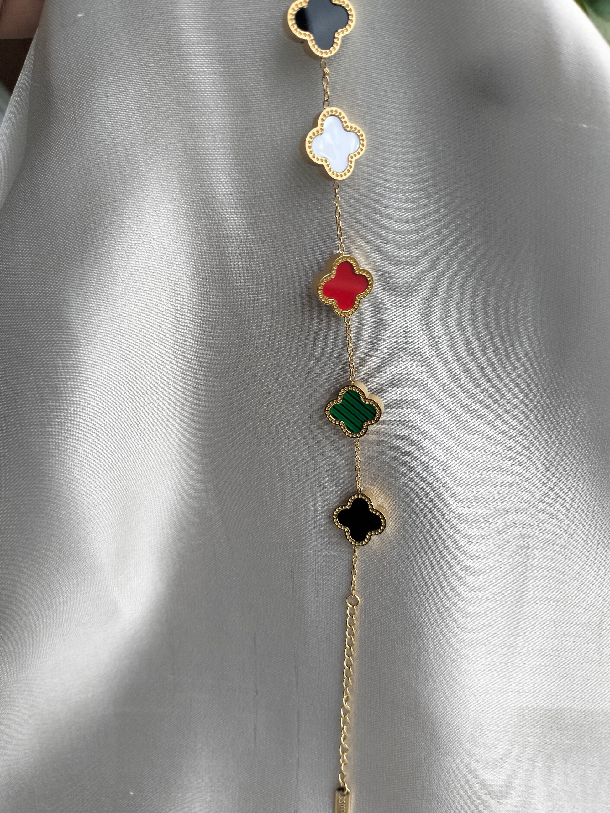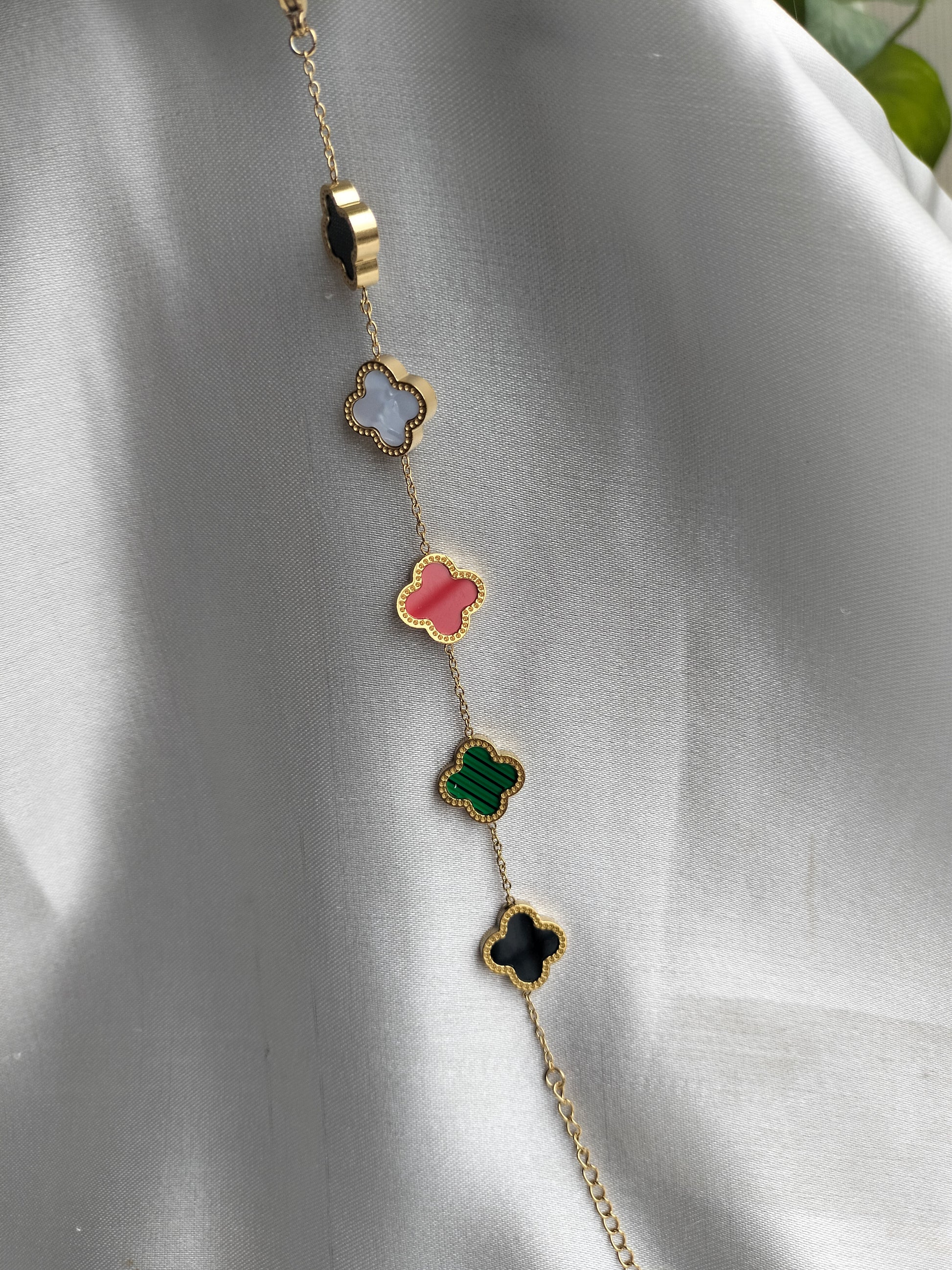 Multi colour clovar titanium chain bracelet
