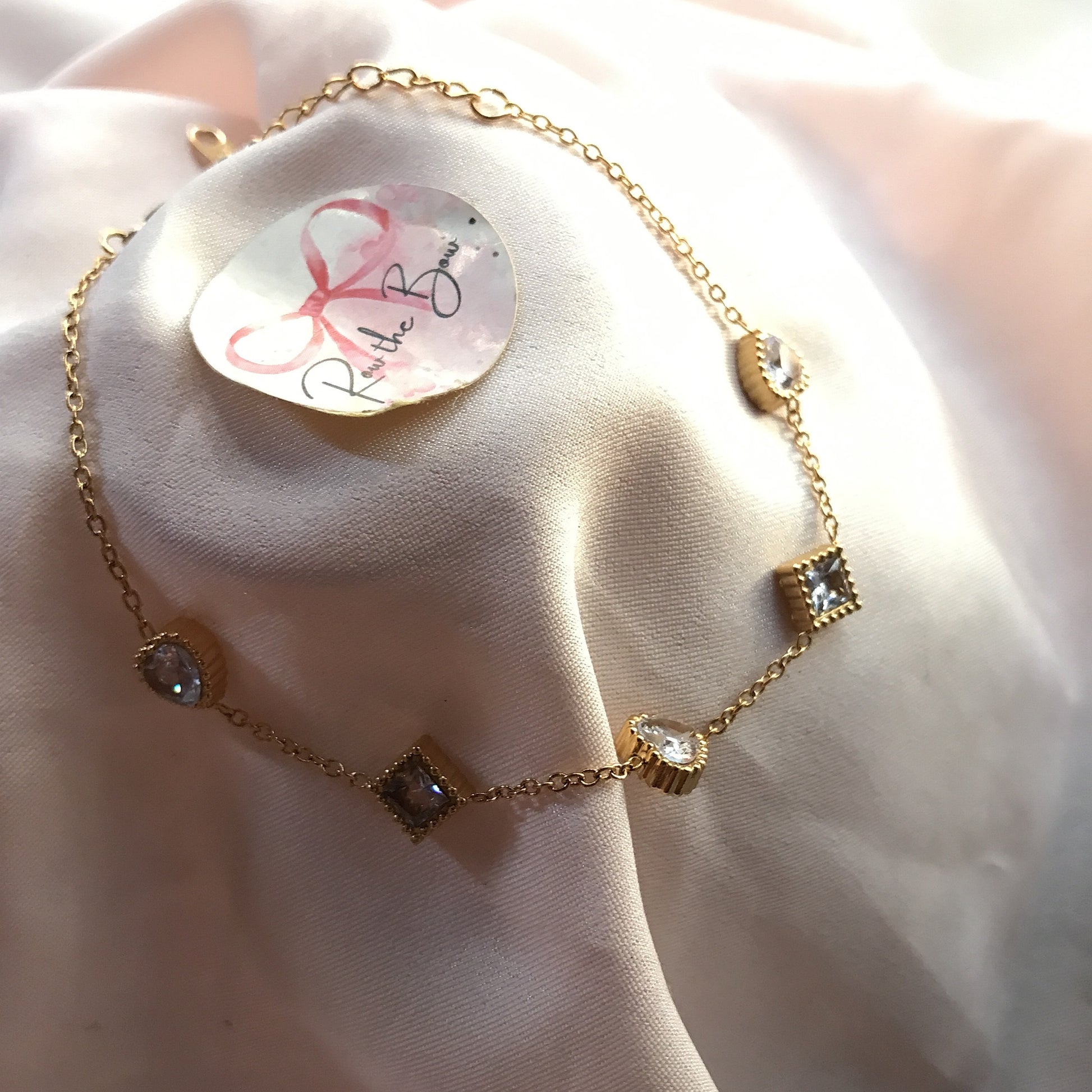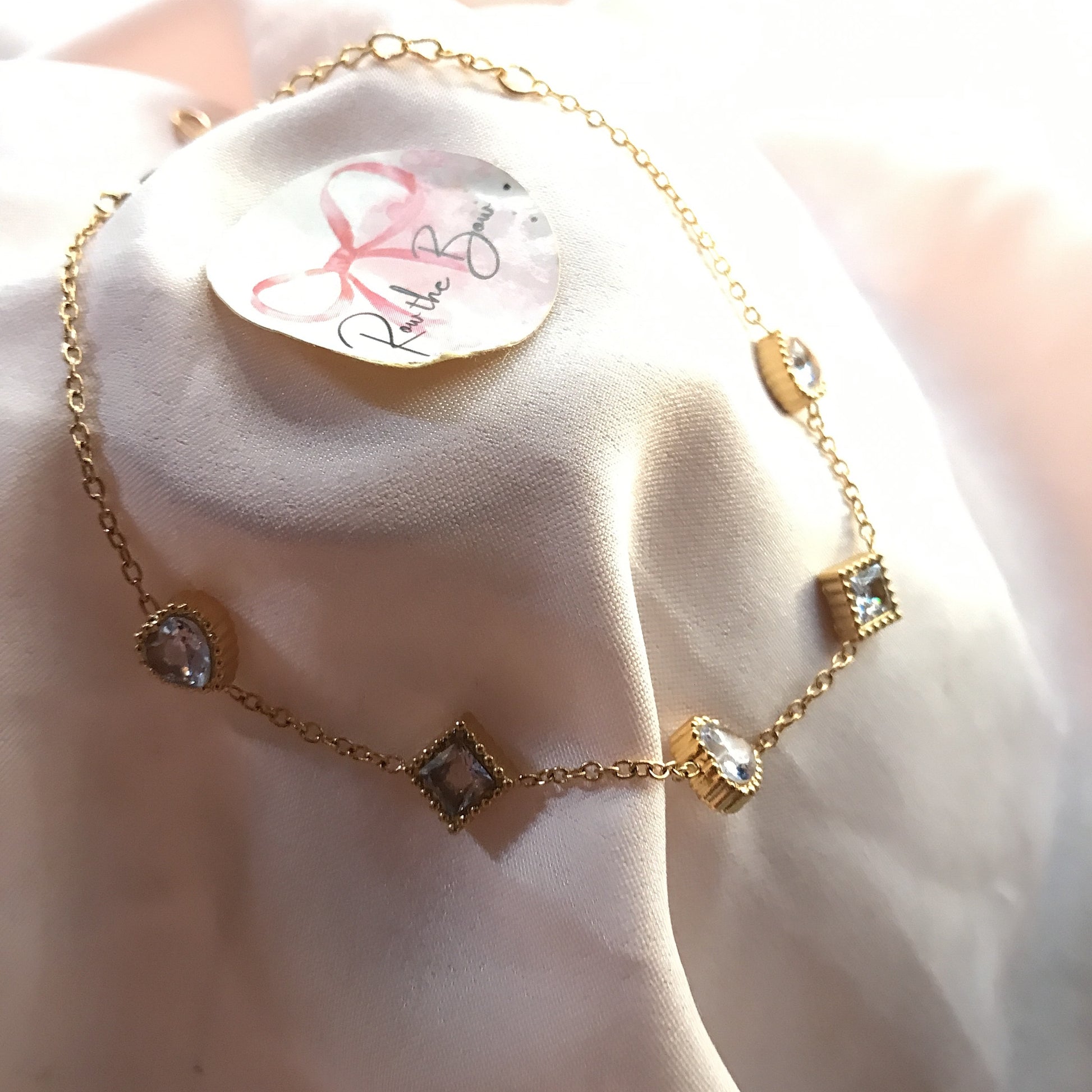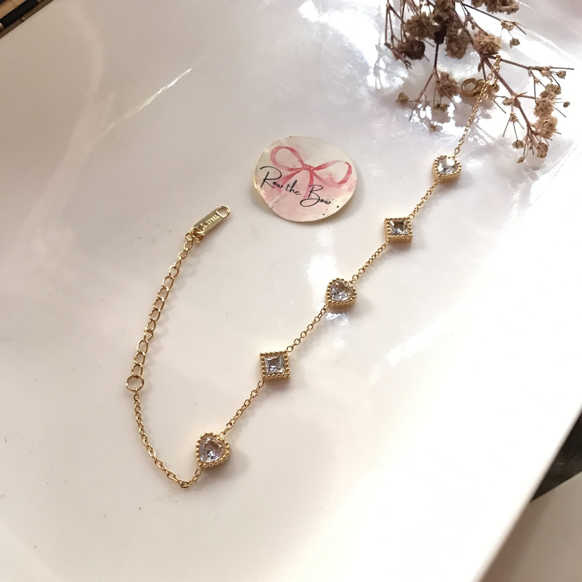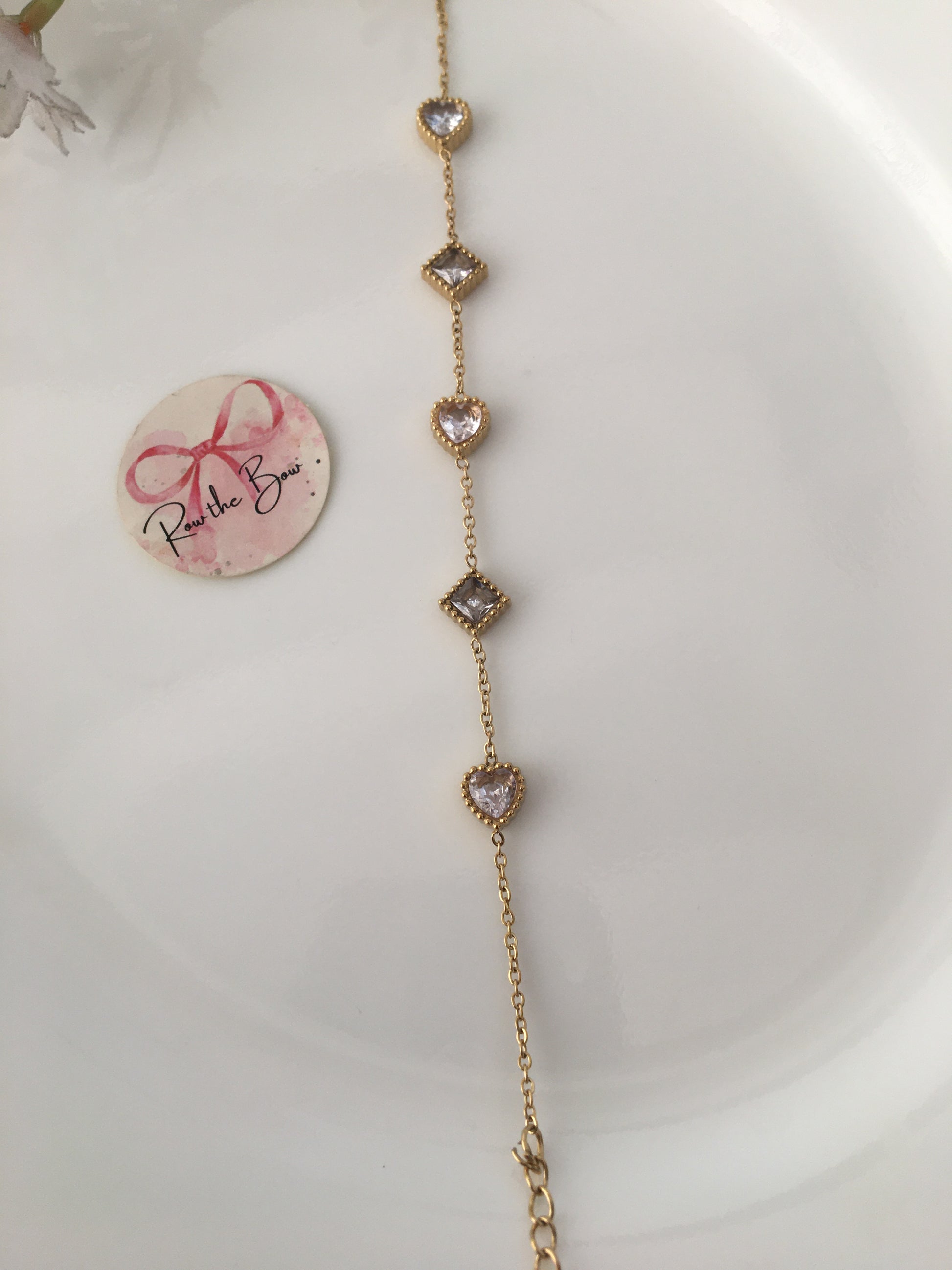 Off white heart and triangle shape adjustable bracelet. Water and sweat resistant.
