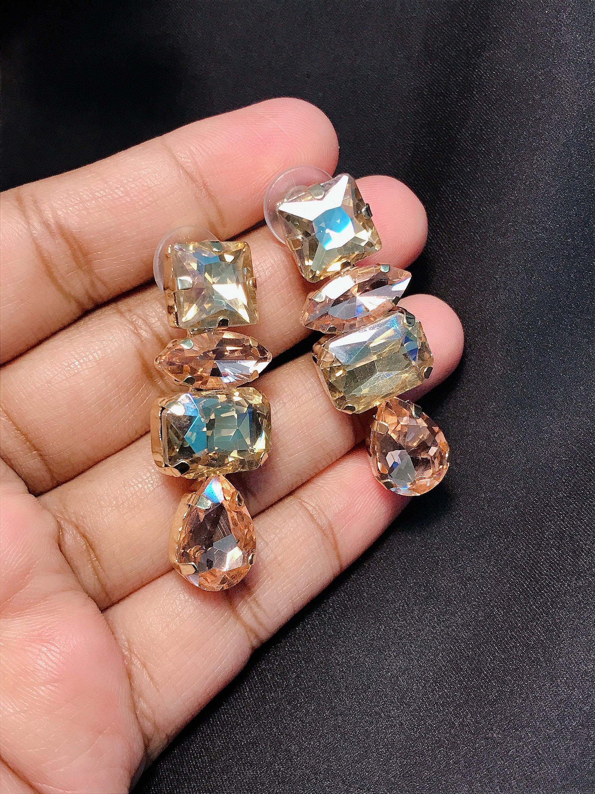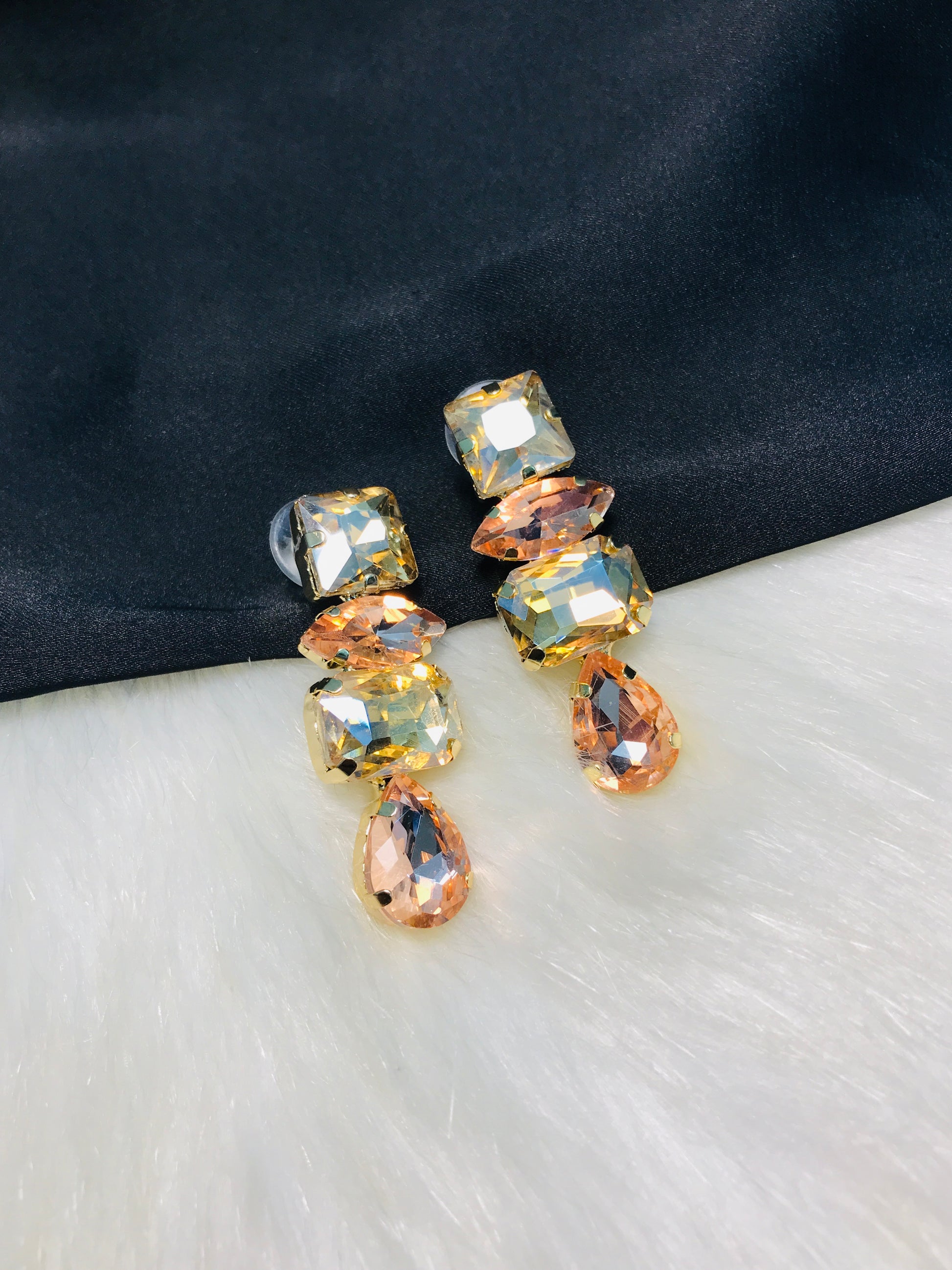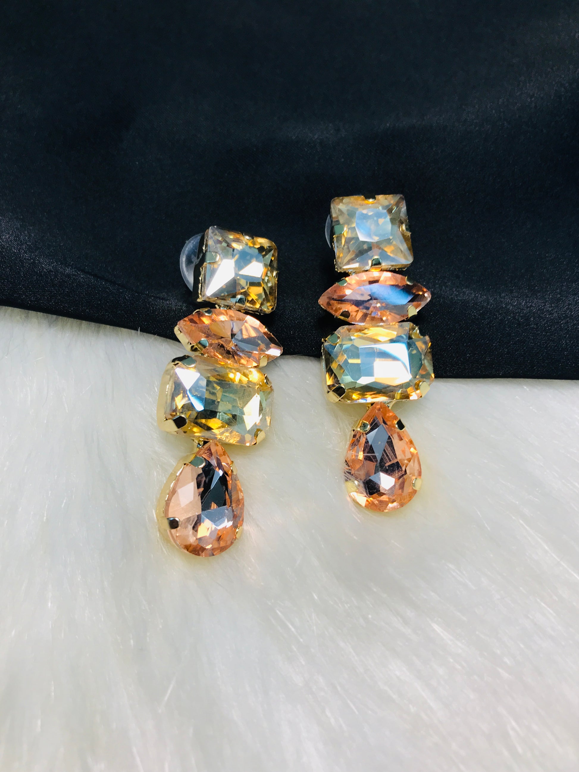 white & peach stpne earrings