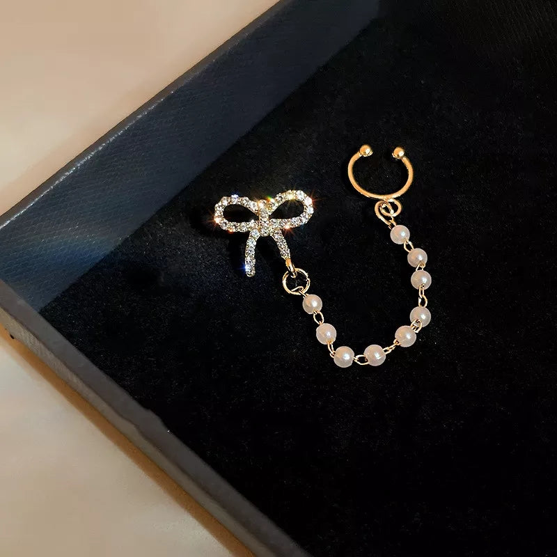 Golden based pearl bow chain cuff