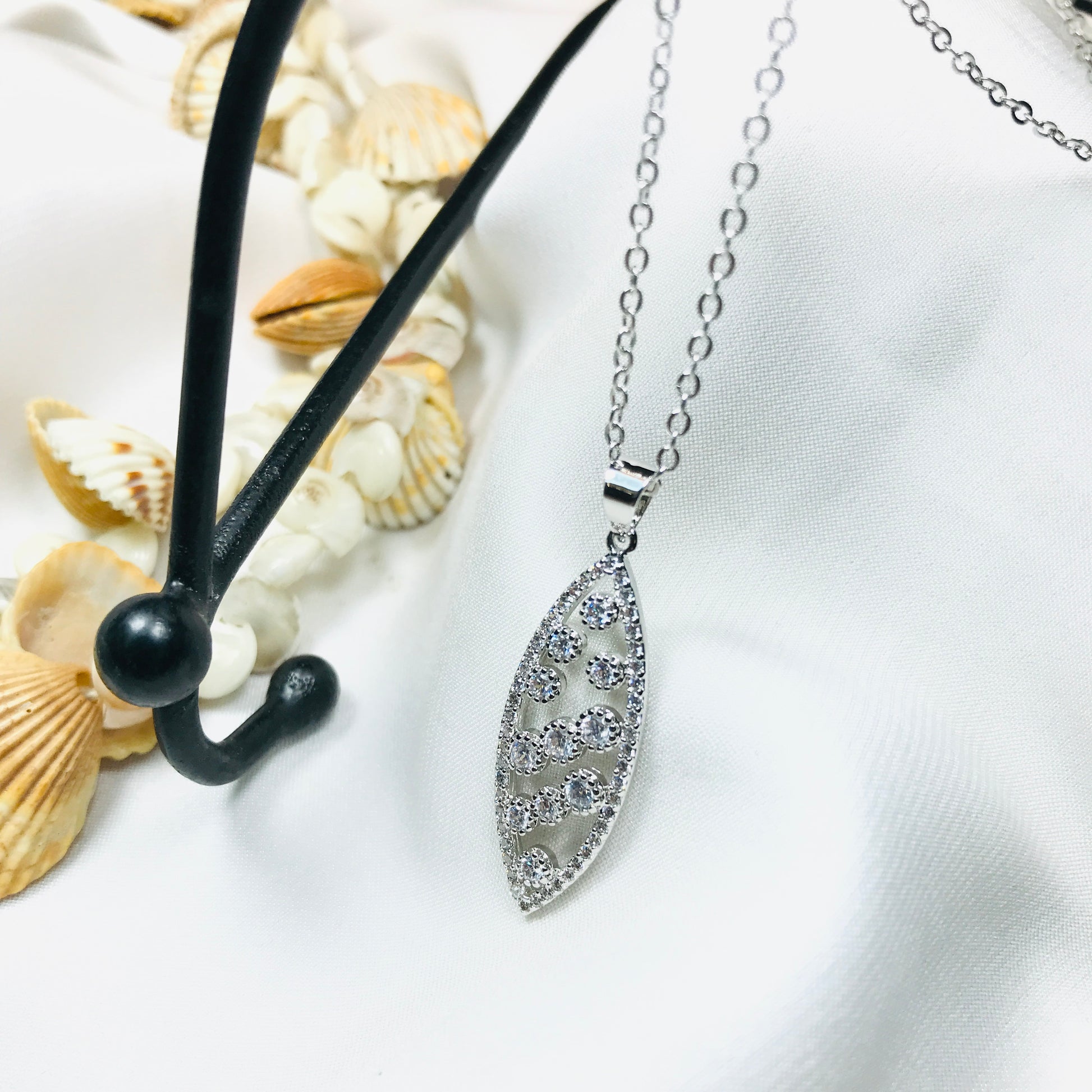 Zircon Fashion petal Pendant, 13" long Necklace Jewelry