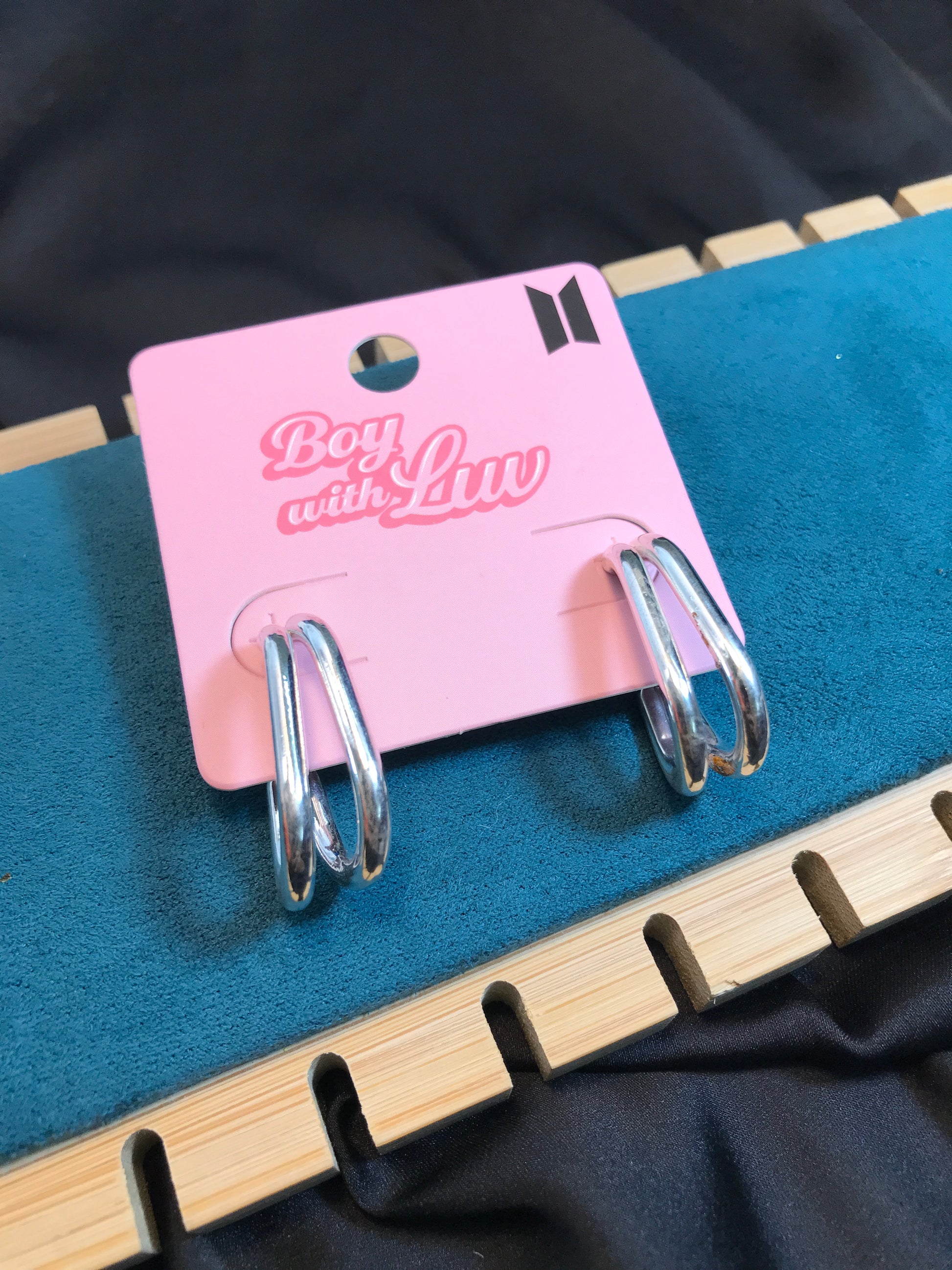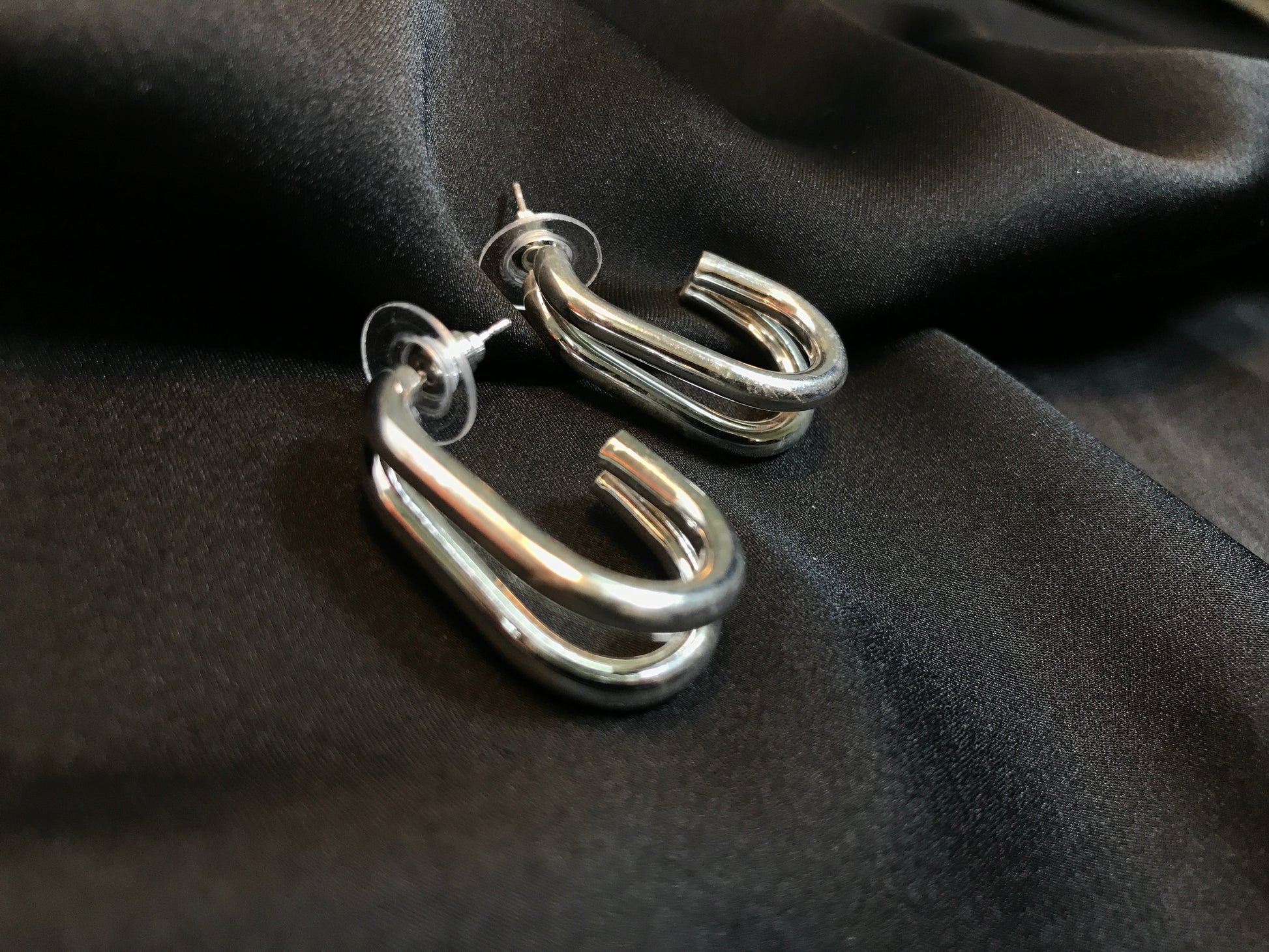 Silver Double Line Oval Hoop