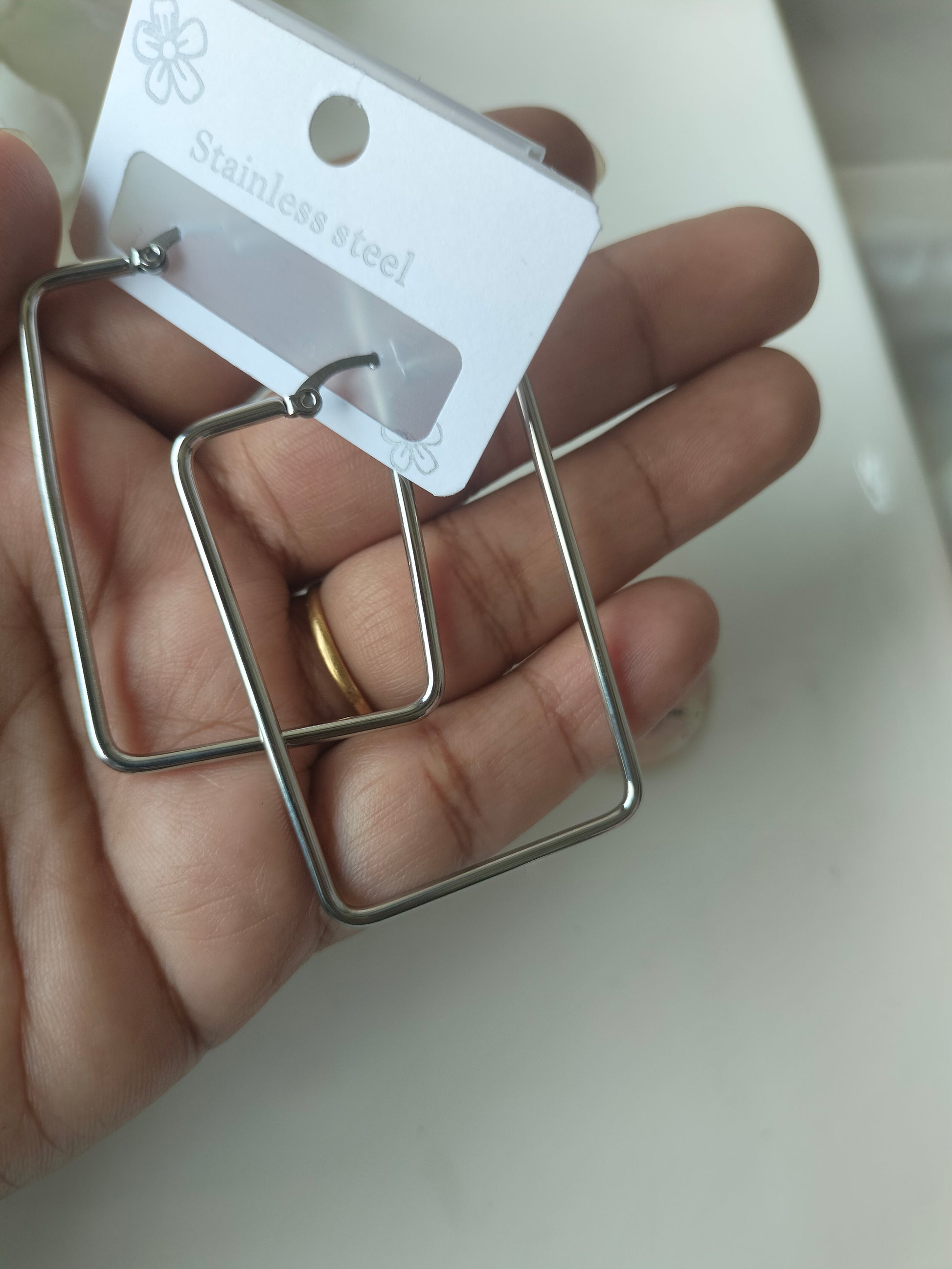 Silver square hoop