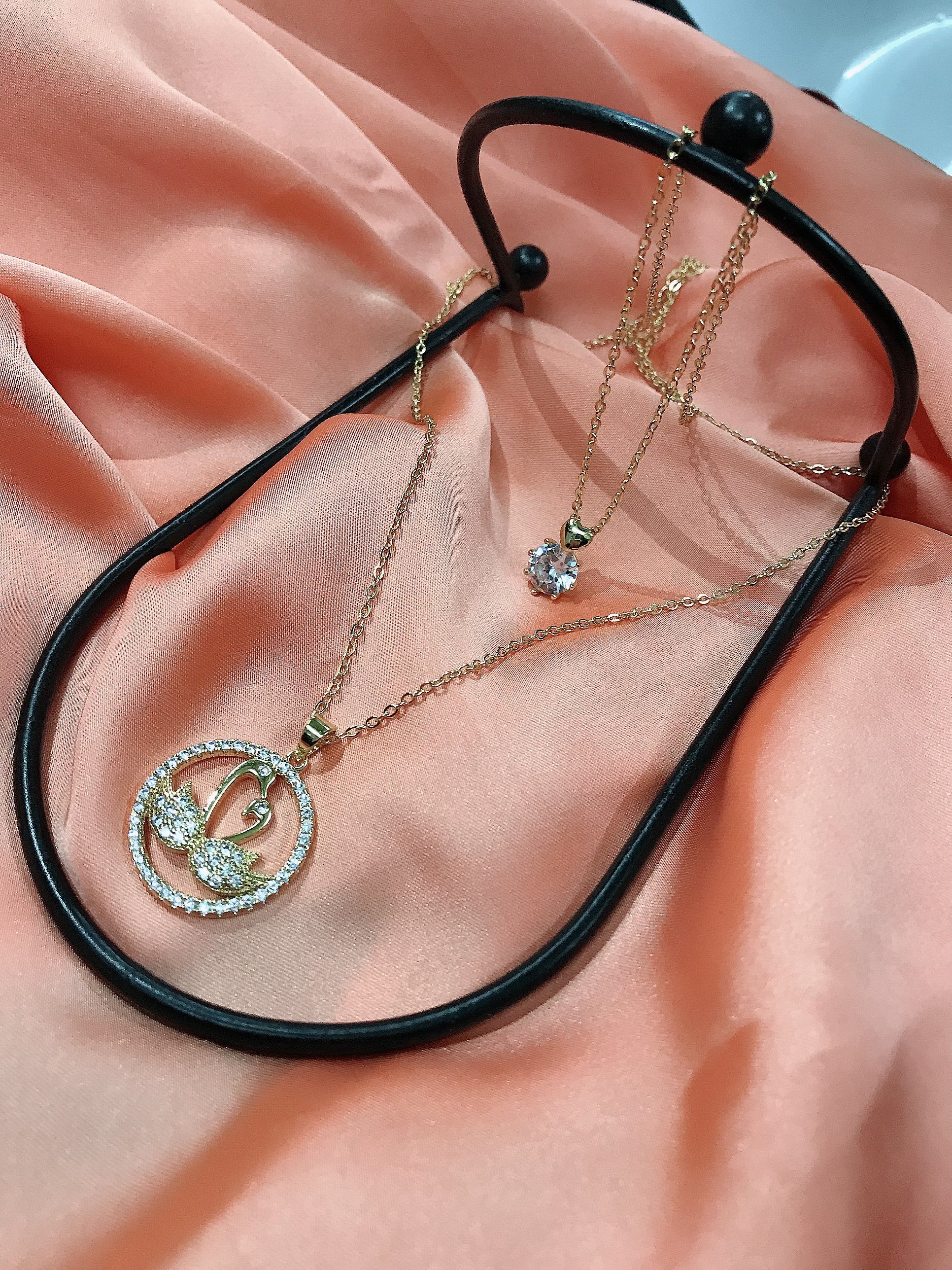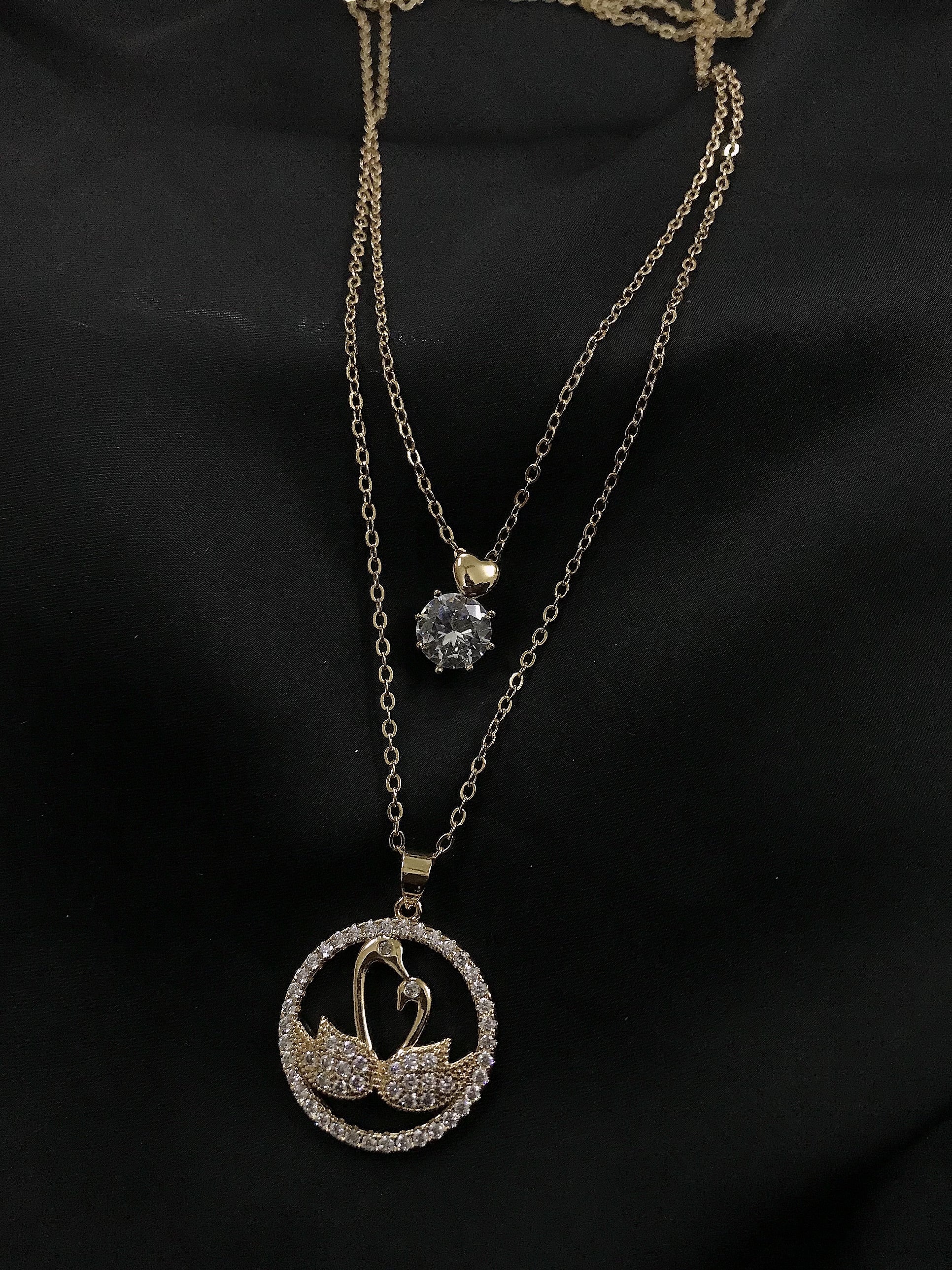Double layer golden necklace with goose pendant