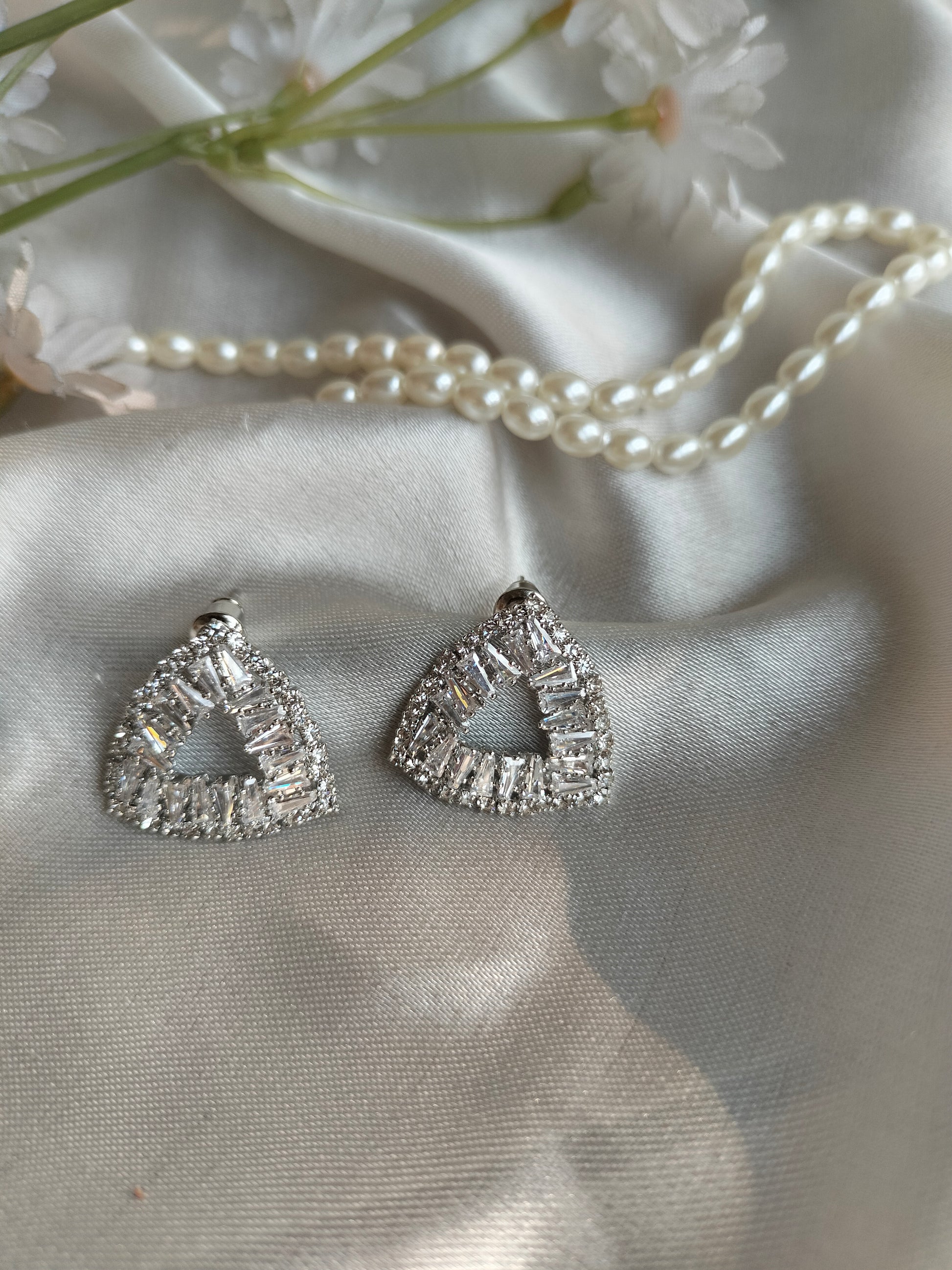 Zircon stone Silver triangular earring.